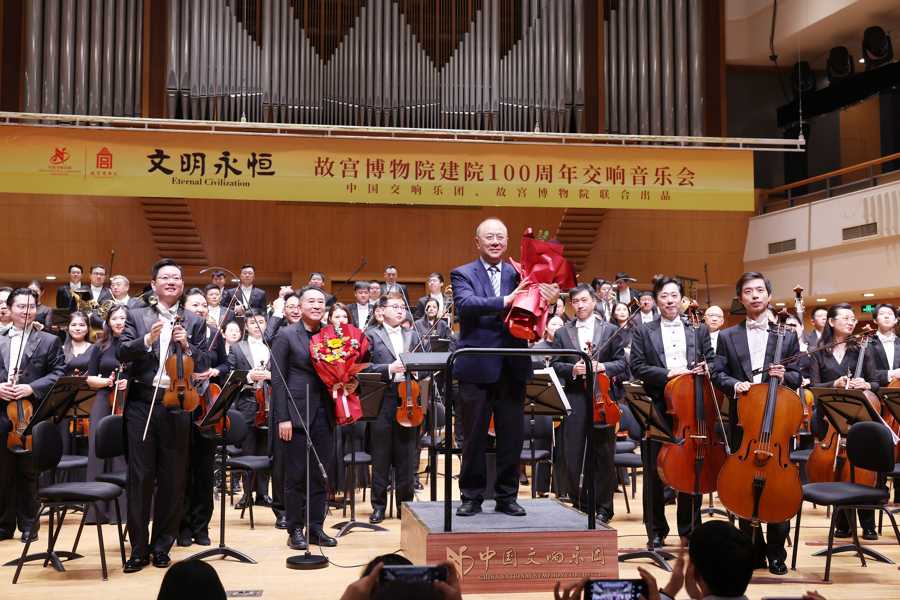China National Symphony Orchestra,under the baton ofconductor Hu Yongyan,stages a concert marking the 100thanniversary of the Palace Museum
